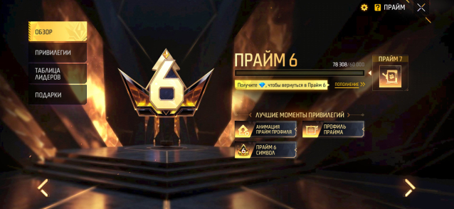 Прайм 6 уровень упал так как не доначу, если закинуть хоть 100 алмазов будет опять 6 прайм еще 2к алмазов и будет седьмой прайм.