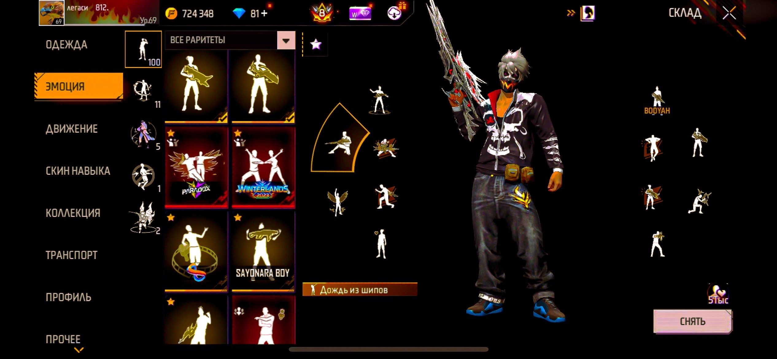 -На аккаунте: Мастера s2,s3,s4 и тд,15 фулл эволюций, 11 появлений, самый «РЕДКИЙ» парашют за промокод, грим BOOYAH, инь янь, белые волосы, маска за 3 чертежа, и многое другое!