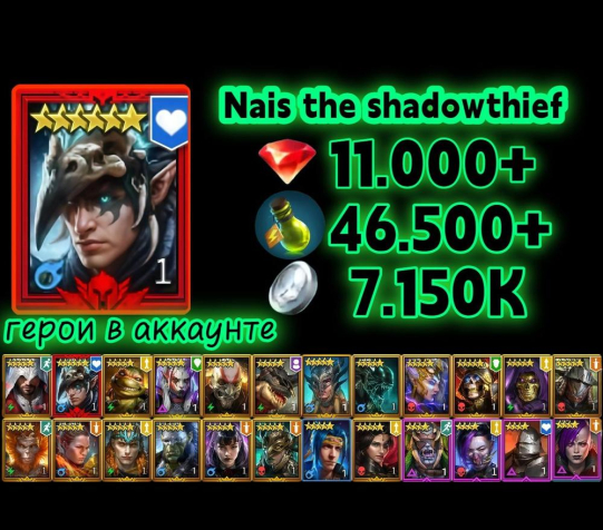 ⚡️ ПОЛНЫЙ ДОСТУП ⚡️ Nais the shadowthief ⚡️ 11000+ Рубинов ⚡️ 46500+ Энергия ⚡️ СМОТРИТЕ ОПИСАНИЕ ⚡️Эпических героев: 9