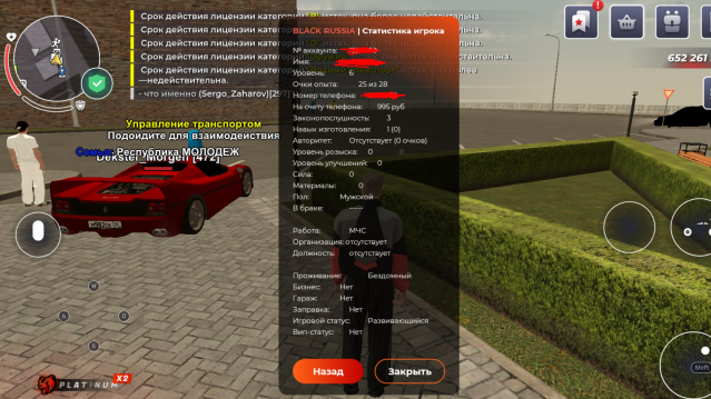 Подробное описание: BR RP Platinum | 6 LVL | 650.000 | 4 АВТО (гос 2.6кк) 1000 доната | ПОЧТА ВК ДС ОТВЯЗАНЫ