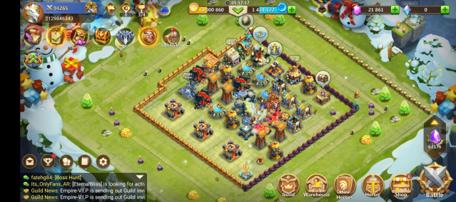 Сила (к): 94Краткое описание: 94k Might 21k-Gems-31 Legendary heros Upgraded Tons of Resources