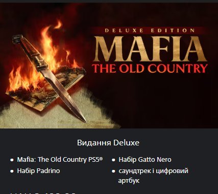 Краткое описание: 🟦PS5🟦🏆Mafia The Old Country Deluxe Edition🏆🟦🟦🟡УКРАИНА🔵🟦✅ВАШ акк или НОВЫЙ✅