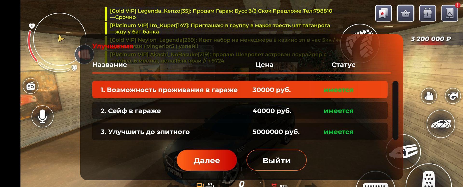 🚀 Гараж с 3 из 3 улучшениями, дает +6 доп слотов для авто. Цена такого гаража около 8 000 000 рублей.