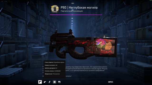 Подробное описание: P90 | Неглубокая могила с наклейкой: Первая кровь (голографическая)
