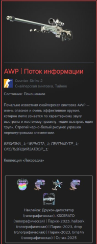 Краткое описание: 🟥5 НАКЛЕЕК🟥КРАСИВЫЙ КРАФТ💎✨AWP | Поток информации💎✨💎✨🟥💎✨🟥ФОТО В ОПИСАНИИ✨💎✨🟥✨🟥✨🟥