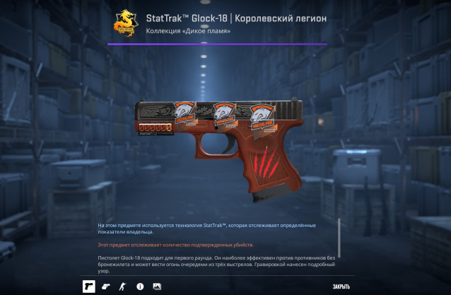 Краткое описание: 📕⚫️ StatTrak™ Glock-18 | Королевский легион [ Поношенное ] (c наклейками) ⚫️📕