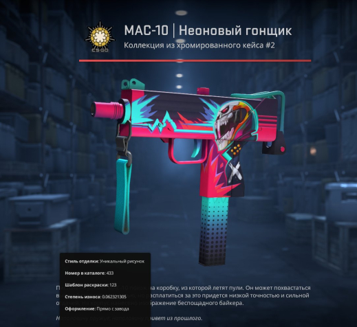 Краткое описание: MAC-10 | Неоновый гонщик