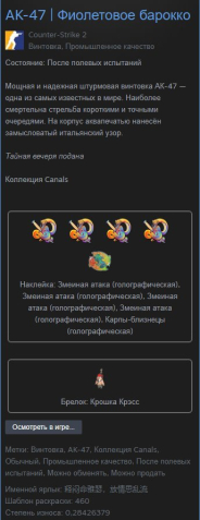 Краткое описание: 💜 AK-47 | Фиолетовое барокко 💜 Нейм.Тег + Наклеек на 2к рублей + брелок 💜