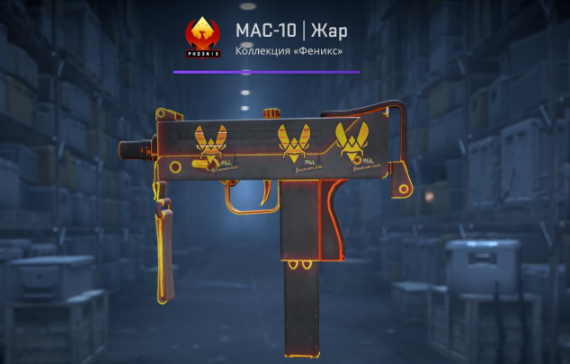 Подробное описание: 📕⚫️ MAC-10 | Жар [ Немного поношенное ] (c наклейками) ⚫️📕