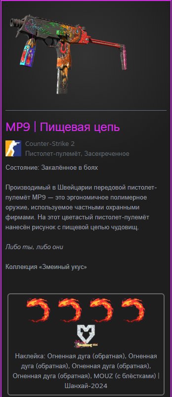 Краткое описание: 🟥КРАСИВЫЙ КРАФТ ИЗ 5 НАКЛЕЕК🟥✨💎✨🟥💎MP9 | Пищевая цепь✨🟥ФОТО В ОПИСАНИИ✨✨🟥✨💎✨✨💎✨✨💎✨