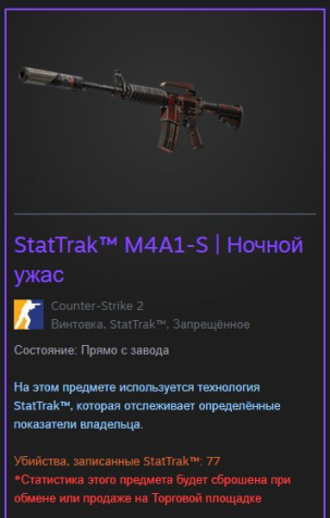 Подробное описание: 🔥 StatTrak™ M4A1-S | Ночной ужас 🔥