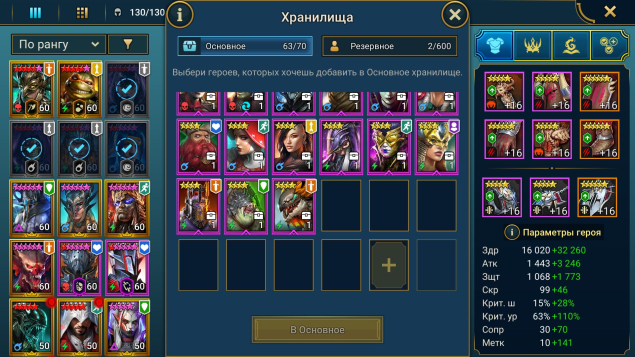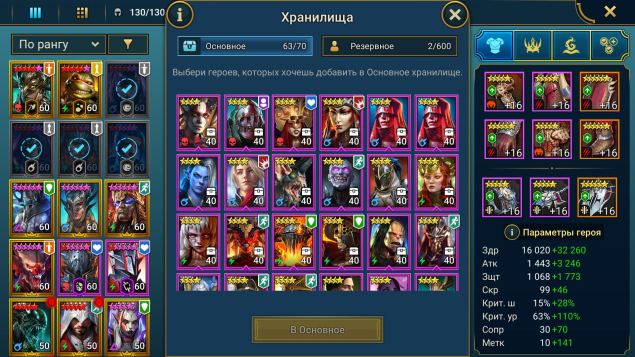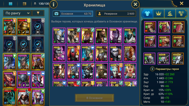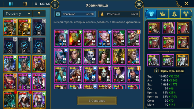 💠 17 Легендарных, 71 Эпических и 107 редких героев