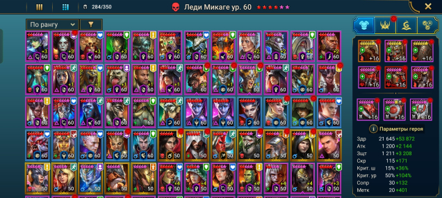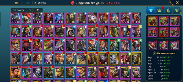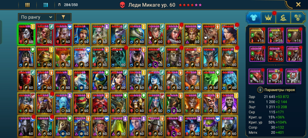 Проходит аккаунт абсолютно всё. Наигрался, последнее время прохожу только КБ/лес/башню и делаю слияния героев. В хранилищах ещё куча героев в том числе легендарных.