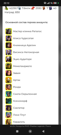 Легендарных героев: 17Уровень аккаунта: 1