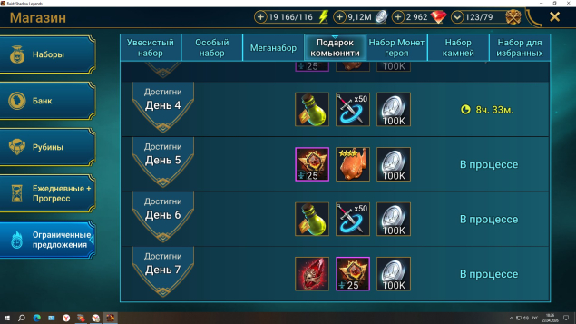💥Рубинов 🔶3 000к + Серебра ⚪ 9м + Энергии ⚡19 000к + во входящих + книги 📘 23 редких 📔 32 эпических 📕 5 легендарных есть курицы для прокачки героев и много пиво