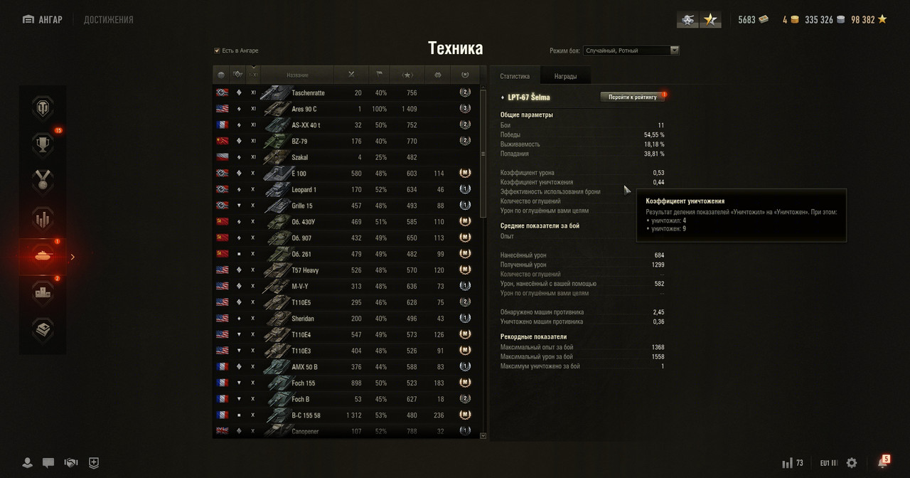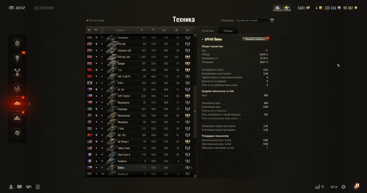 10 LEVEL: Dravec, E 100, Leopard 1, Grille 15, Object 430U, Object 907, Object 261, T57 Heavy, M-V-Y, Tesak, T110E4, T110E3, Foch 155, Foch B, Bat.-Châtillon 155 58, FV215b, FV215b 183, Badger, 113, WZ-113G FT, STB-1, TVP T 50/51, Kranvagn, Rinoceronte, Centurion AX, WZ-111G FT, VZ. 55, Minotauro, Blyskawica.