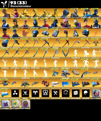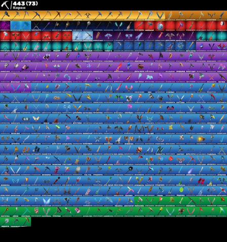 Подробное описание: на аккаунте очень много покупных скинов, кирок, эмоций и т д.