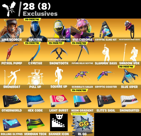 Краткое описание: 👕 169 скинов 🎮 2874 Уровень 💰 0 V-bucks 💰 Lina Scorch | Sultura | Subzero Cryptic | Vivi Chroma |