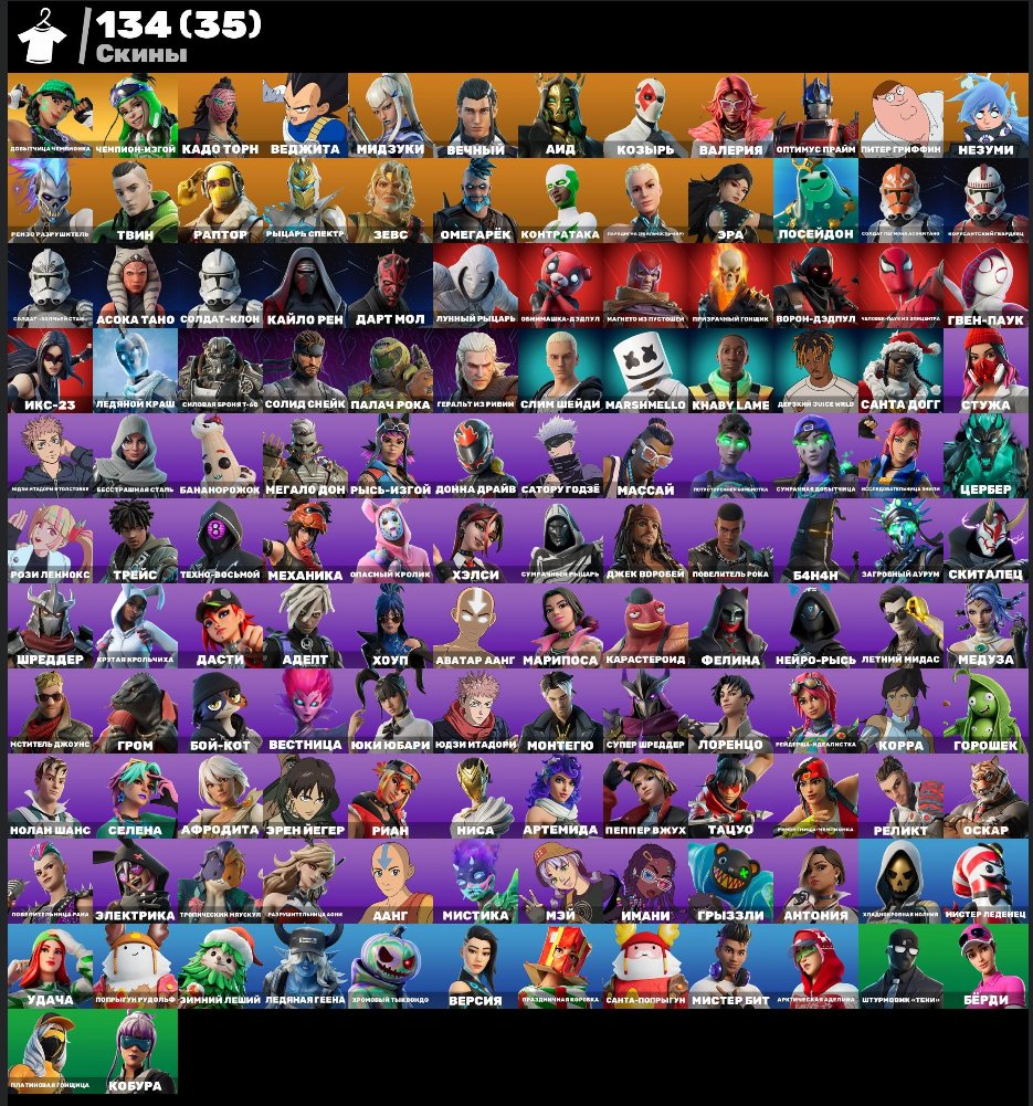 Подробное описание: 134 skins | Championship Aura | FNCS Renegade | Era | Zeus | Spectra Knight Last Match: 19.02.26 рк