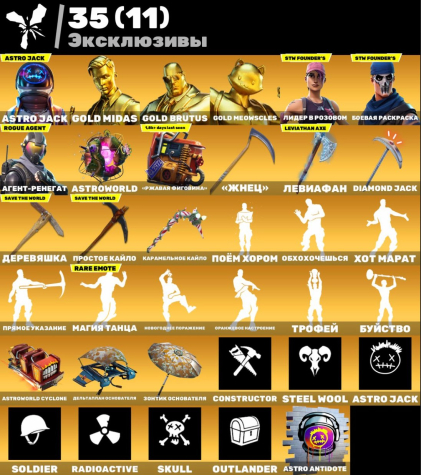 👑 ЭКСКЛЮЗИВНЫЙ ОЛДСКУЛ (АГЕНТ-РЕНЕГАТ): Показатель статуса! На аккаунте есть Агент-ренегат (Rogue Agent) — самый первый стартер-пак Fortnite из 3 сезона 1 главы.