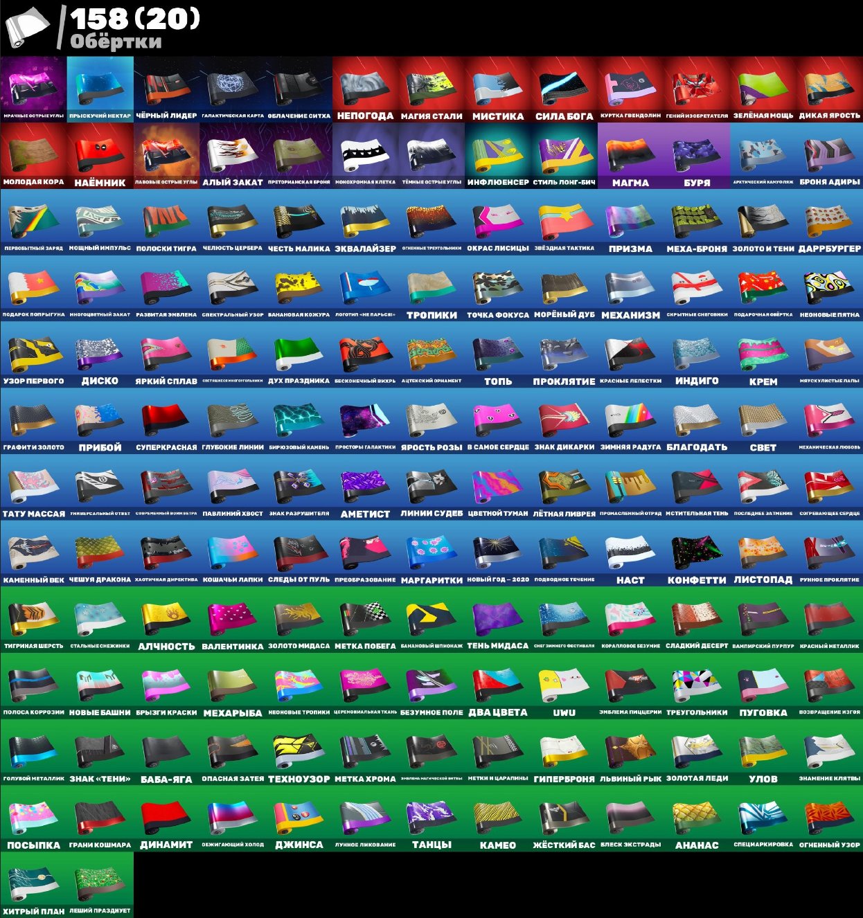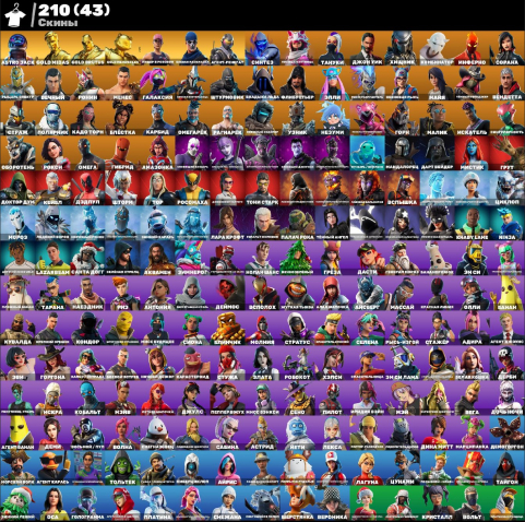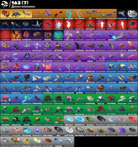 📊 Детали аккаунта: 🛑 210 скинов 🎒 224 кирки 🎒 187 танцев 🎒164 дельтаплана