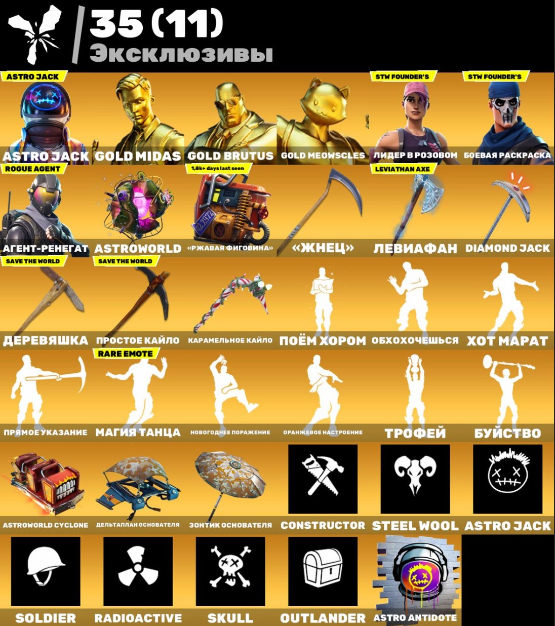 Краткое описание: 👑💖Быстрая ВЫДАЧА💎210 skins🎈Левиафан🎈OLD PVE🎈Astro Jack🎈Обхохочешься🎈Агент-ренегат🎈Джон Уик🎈Griddy 💖👑
