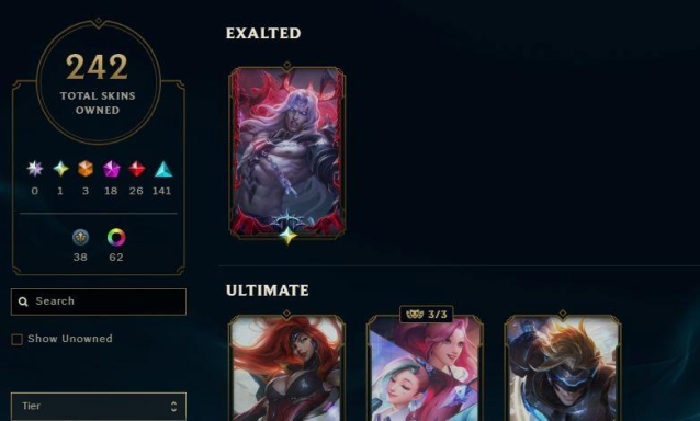 На Афелии, Каине и Хвэе все скины, на Виего не хвотает только EDG.