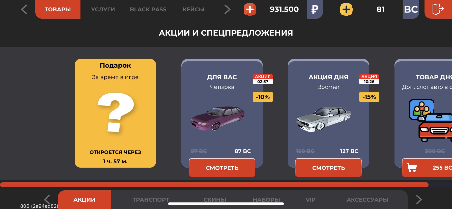 Подробное описание: Аккаунт 36 лвл привязки утеряны!!! На аккаунте имеется 81BC данный скин стоит 15-18 миллионов имущество на 25-35кк 4авто 7слотов на машину и много аксессуаров