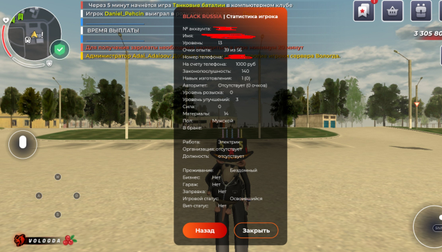 Подробное описание: BR RP Vologda | 13 lvl | 3.300.000 | Camaro ZL1 (гос 4.6кк) | Golf GTI (гос 1.4кк) | 958 доната | ВК ДС ОТВЯЗАНЫ