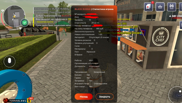 Подробное описание: BR RP Yaroslavl | 10 lvl | 4.300.000 | Grand Cherokee (гос 450к) | 24 доната | Инвентарь (1-2кк) | DS ОТВЯЗАН