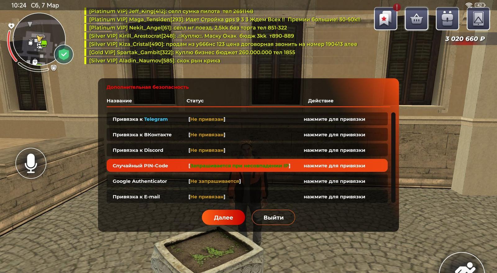 На аккаунте 3 уровень, на балансе 3кк, в инвентаре аксы и скины.
