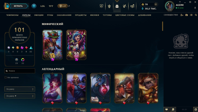 Инвентарь: 28 ключей, 6326 оранжевой эссенции, 10 мифической эссенции. Куплены все герои (последний — Юнара).
