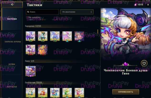 ТФТ чибики: Акали, Ари, Гвен, Кейтлин, Люкс, Энни. +арены, бумы, ранговые эмоуты.