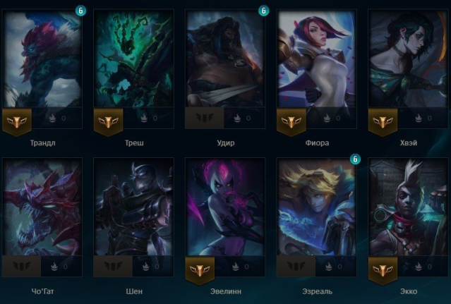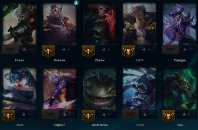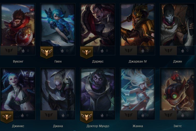 Чемпионы(64): Diana, Ornn, Syndra, Milio, Aatrox, Nami, Master Yi, Azir, Kayn, Hwei, Soraka, Kai'Sa, Warwick, Miss Fortune, Ashe, Morgana, Evelynn, Thresh, Twitch, Yasuo, Cho'Gath, Yunara, Dr. Mundo, Sona, Irelia, Janna, Pyke, Trundle, Swain, Caitlyn, Katarina, Jarvan IV, Orianna, Wukong, Brand, Lee Sin, Vayne, Braum, Jhin, Kindred, Udyr, Poppy, Ezreal, Akali, Leona, Talon, Riven, Jinx, Yuumi, Tahm Kench, Shen, Lux, Ahri, Volibear, Sett, Lucian, Rakan, Fiora, Ziggs, Ekko, Lulu, Gwen, Darius, Vi