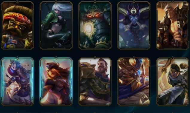 Чемпионы(121): Annie, Olaf, Galio, Ornn, Twisted Fate, Xin Zhao, Sylas, Urgot, LeBlanc, Vladimir, Fiddlesticks, Kayle, Aatrox, Aphelios, Nami, Master Yi, Azir, Alistar, Ryze, Sion, Sivir, Soraka, Teemo, Tristana, Warwick, Nunu & Willump, Miss Fortune, Ashe, Tryndamere, Jax, Morgana, Singed, Evelynn, Twitch, Amumu, Rammus, Anivia, Dr. Mundo, Kassadin, Irelia, Janna, Gangplank, Corki, Karma, Pyke, Taric, Veigar, Trundle, Caitlyn, Blitzcrank, Malphite, Katarina, Maokai, Renekton, Orianna, Wukong, Brand, Lee Sin, Vayne, Rumble, Heimerdinger, Nasus, Nidalee, Udyr, Poppy, Gragas, Pantheon, Ezreal, Mordekaiser, Yorick, Akali, Garen, Leona, Malzahar, Talon, Riven, Shen, Lux, Xerath, Shyvana, Ahri, Graves, Fizz, Volibear, Rengar, Varus, Nautilus, Viktor, Sejuani, Fiora, Draven, Hecarim, Darius, Jayce, Lissandra, Diana, Quinn, Syndra, Kayn, Zoe, Kai'Sa, Gnar, Thresh, Yasuo, Illaoi, Camille, Rek'Sai, Kalista, Bard, Braum, Jhin, Jinx, Tahm Kench, Senna, Lucian, Zed, Kled, Rakan, Xayah, Ekko, Vi