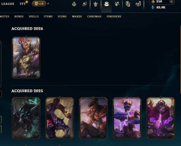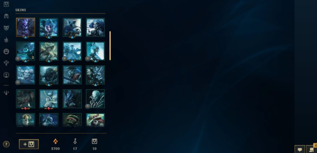 — Blackfrost Sion — Cosmic Blade Master yi — Cosmic Dusk Xayah — Dark Valkyrie Diana — 2 Death Sworn Viktor — Dragonmancer Rakan — DWG Jhin — DWG Nidalee — Freljord Ashe — Fright Night Trundle — Full Metal Pantheon — High Noon Viktor — High Noon Yone — Immortal Journey Soraka — Marauder Wawick — Nosfereratu Vladimir — Odyssey Jinx -Piltover Cutoms Blitzcrank — Piltover Cutoms Heimerdinger — Pool Party Miss Fortune — Slay Belle Katarina — Special Weapon Zac -Viscero Xin Zhao — Waterloo Miss Fortune — Worldbreaker Nasus