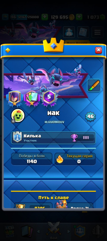 Сила (к): 8395Краткое описание: Продам акк в клеш рояль чек описание