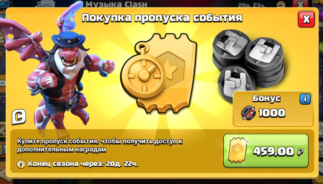 Краткое описание: 𝐄𝐕𝐄𝐍𝐓𝐒 𝐏𝐀𝐒𝐒 ❌❌❌❌ ™️ ЛЮБОЙ ДОНАТ ❌❌❌❌ Событие Музыка Clash стоимостью $𝟓,𝟗𝟗 / 𝟰𝟓𝟗 𝐑𝐔𝐁