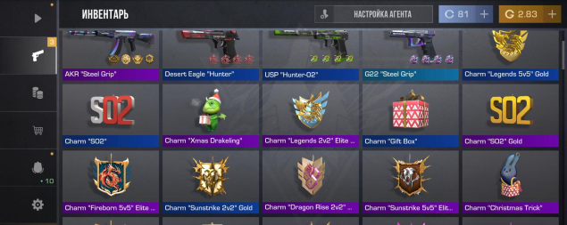 Скины с крутыми наклейками (Stickers): AKR «Steel Grip», Desert Eagle «Hunter» с 4 наклейками, G22 «Steel Grip» и другие.