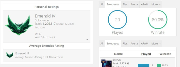 Подробное описание: EUNE❇️Handleveled❇️80% Winrate❇️S16 Emerald IV❇️Emerald I MMR❇️