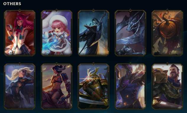 ▷ Скины: Вейгар из Мира ужасов / Акали, охотница за головами / Саблезубая Седжуани / Мародер Алистар / Тыквоголовый Фиддлстикс / Энни Синее Пламя / Победоносный Грейвз / Победоносный Маокай / Победоносная Орианна / Мрачный жнец Картус / Riot Кейл / Победоносный Люциан / Гарен в костюме пингвина / Самурай Йи / Победоносный Атрокс / Старшеклассница Ари