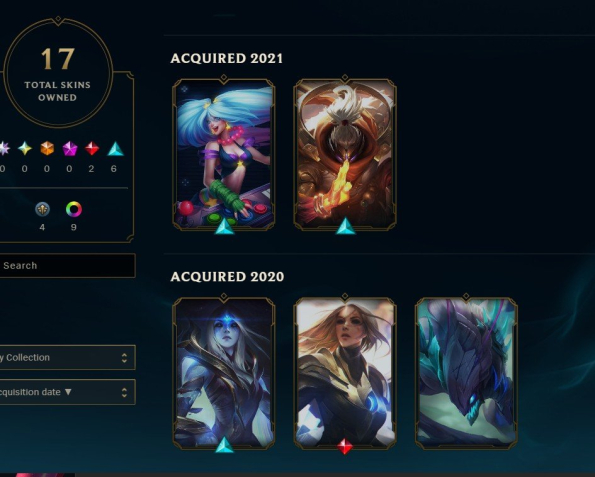 Lunar Eclipse Leona, Victorious Draven, Medieval Twitch, Grey Wawrick, 3 Honors Akshan,Malzahar,Shen, Infernal Diana, Tundra Hunter Warwick, Cosmic Blade Yi, Vancouver Amumu, SSG Taliyah, Arcade Sona, God Staff Jax, Cosmic Queen Ashe, Aether Wing Kayle, Death Blossom Kha'Zix