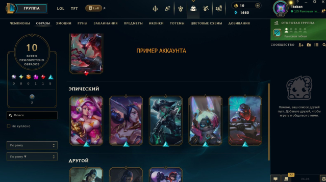 🪪 — ПРИМЕР АККАУНТА — ( ОП: ГГ) — op.gg/ru/lol/summoners/ru/1takan-9408