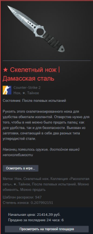 Краткое описание: ★ Скелетный нож | Дамасская сталь