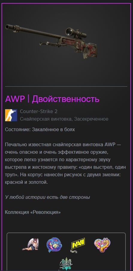 Краткое описание: 💠💠💠 AWP | Двойственность ( Duality ) (Battle-Scarred) — Готов к выдаче! 💠💠💠