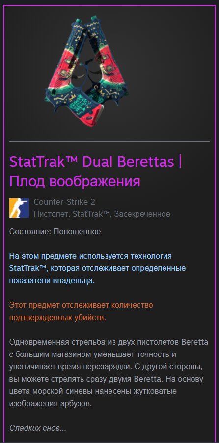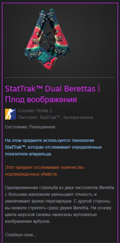 Краткое описание: 💠💠💠 StatTrak™ Dual Berettas | Melondrama (Well-Worn) — Готов к выдаче! 💠💠💠