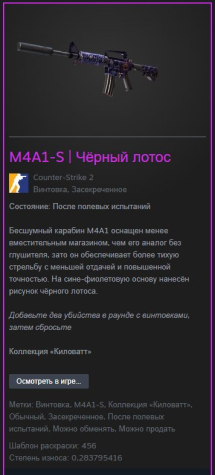 Краткое описание: 💜🟣【 M4A1-S | Чёрный лотос 】🌸【 Float: 0.283795416 】🌸【 ОБМЕН СРАЗУ 】🟣💜