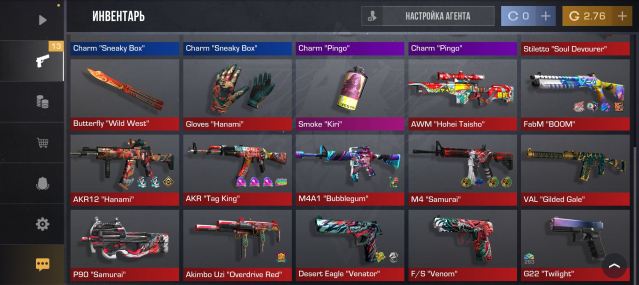 Звание: Без калибровкиКраткое описание: 💖1. Butterfly «WILD WEST» 💖2.STILETTO «SOUI» 🔮💖5К-6К ГОЛДЫ 🌀HANAMI GLOVES🌀【🩷КРАСНЫЙ СЕТ🤍】✉️𝗚𝗺𝗮𝗶𝗹✉️