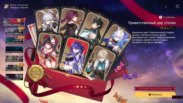 ✦⋅☆⋅✦ 5⭐ Персонаж на выбор (Приветственный дар утопии)