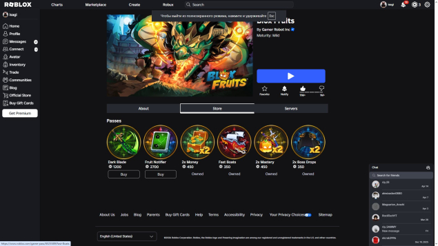 🏮BLOX FRUITS:2x Mastery/Money/Boss Drops, Fast Boats, много фруктов в инвентаре
